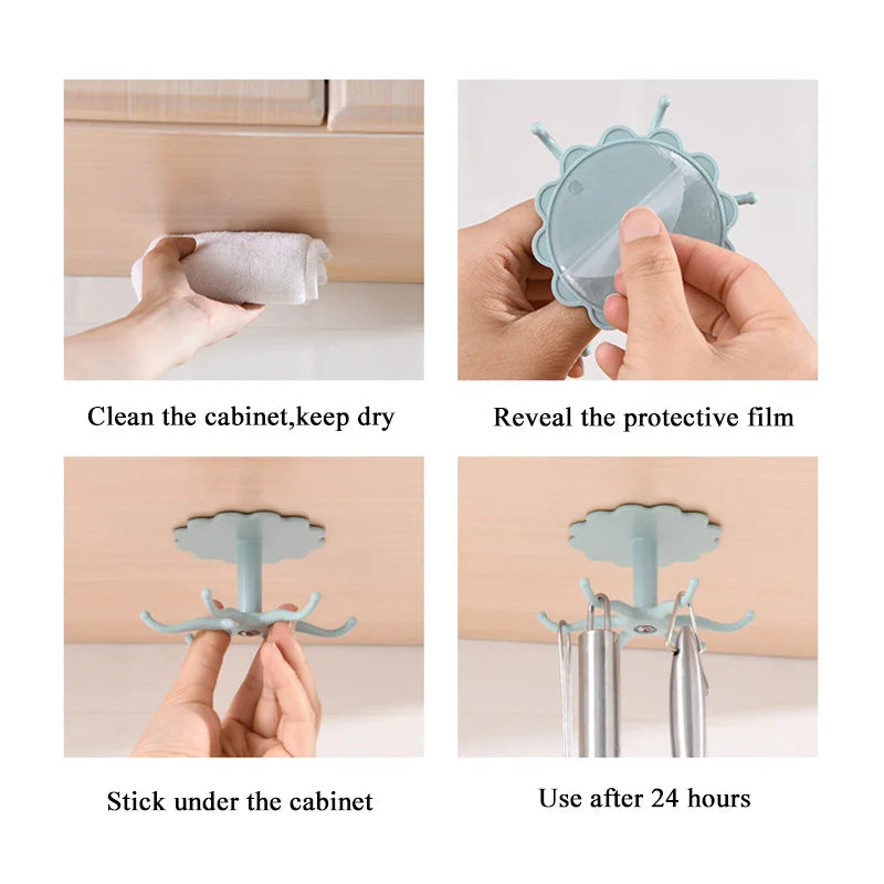 360° drehbarer Küchenhaken – Wandmontierter Organizer für Küchenutensilien (ohne Bohren)